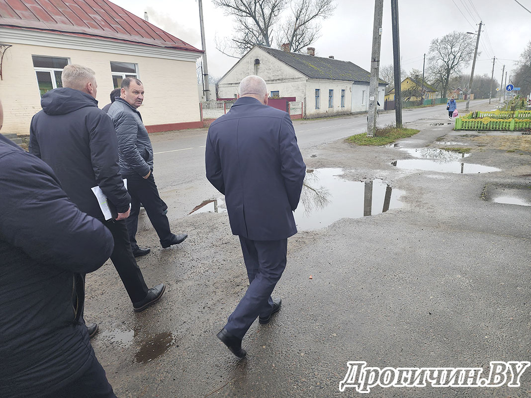 Въехав в населенный пункт, комиссия продолжила свой маршрут по улицам городского поселка пешим ходом, чтобы как можно лучше изучить масштабы предстоящих работ, определить пути решения существующих проблемных моментов.