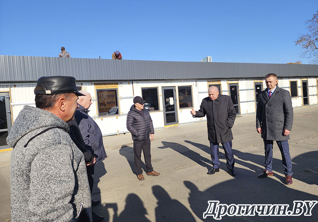 Во вторник председатель райисполкома Сергей Пачко вместе с заместителем председателя Леонидом Макаревичем, начальником отдела архитектуры, строительства и жилищно-коммунального хозяйства райисполкома Инной Хмилевской и директором ЖКХ Евгением Трифоновым провели рабочее совещание с предпринимателями, чьи торговые объекты находятся на территории мини-рынка. Во время встречи глава района обсудил процесс модернизации павильонов, отметил, что работа идет слаженно, и в будущем, когда завершатся все работы, мы получим хороший результат.