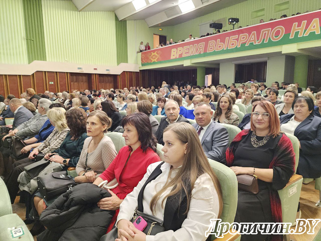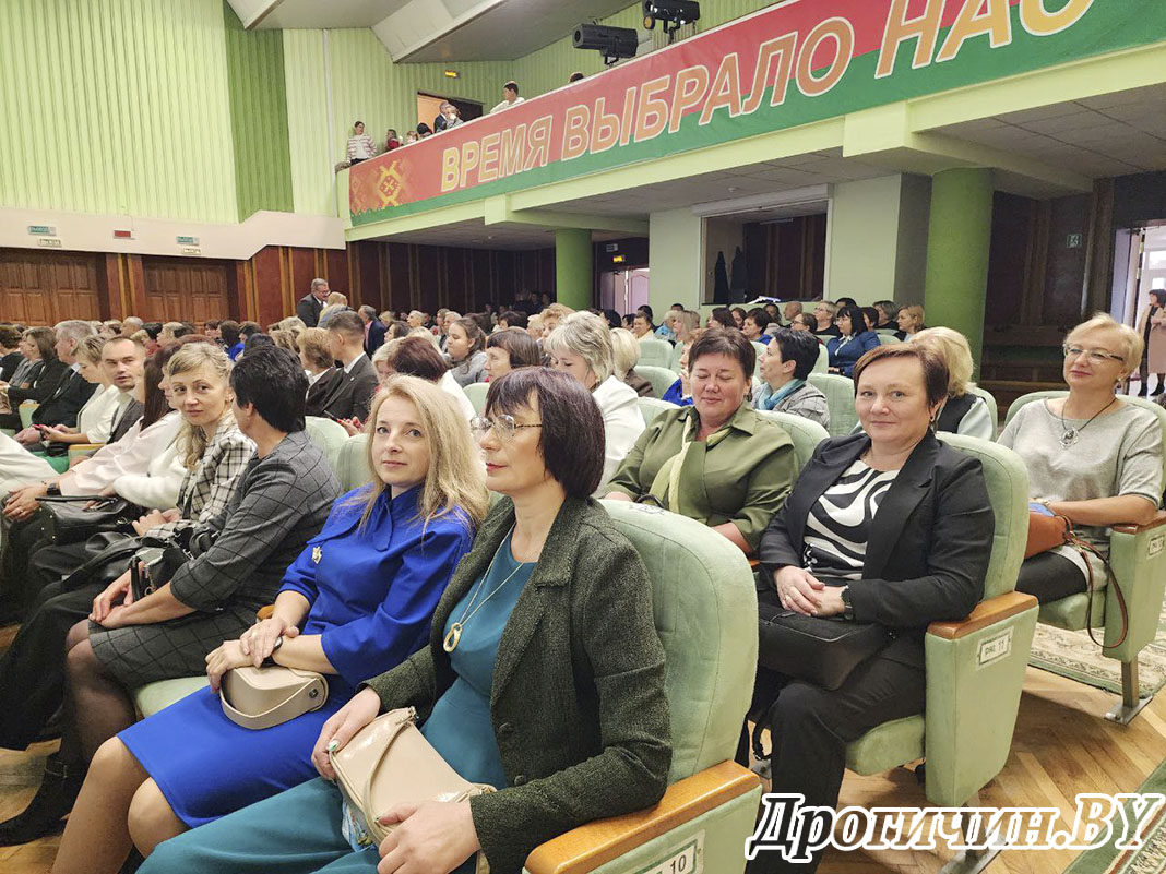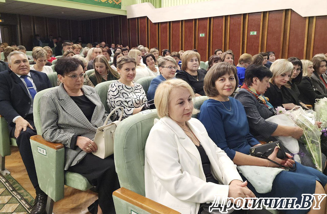 В городском Доме культуры состоялось торжественное мероприятие, посвященное Дню учителя. В этот день чествовали тех, кто посвятил свою жизнь благородному делу воспитания и образования подрастающего поколения. На праздник собрались представители образовательной сферы района: учителя, воспитатели, методисты, педагоги-психологи, технические работники учреждений образования – все, кто ежедневно вносит вклад в развитие системы образования Дрогичинщины.