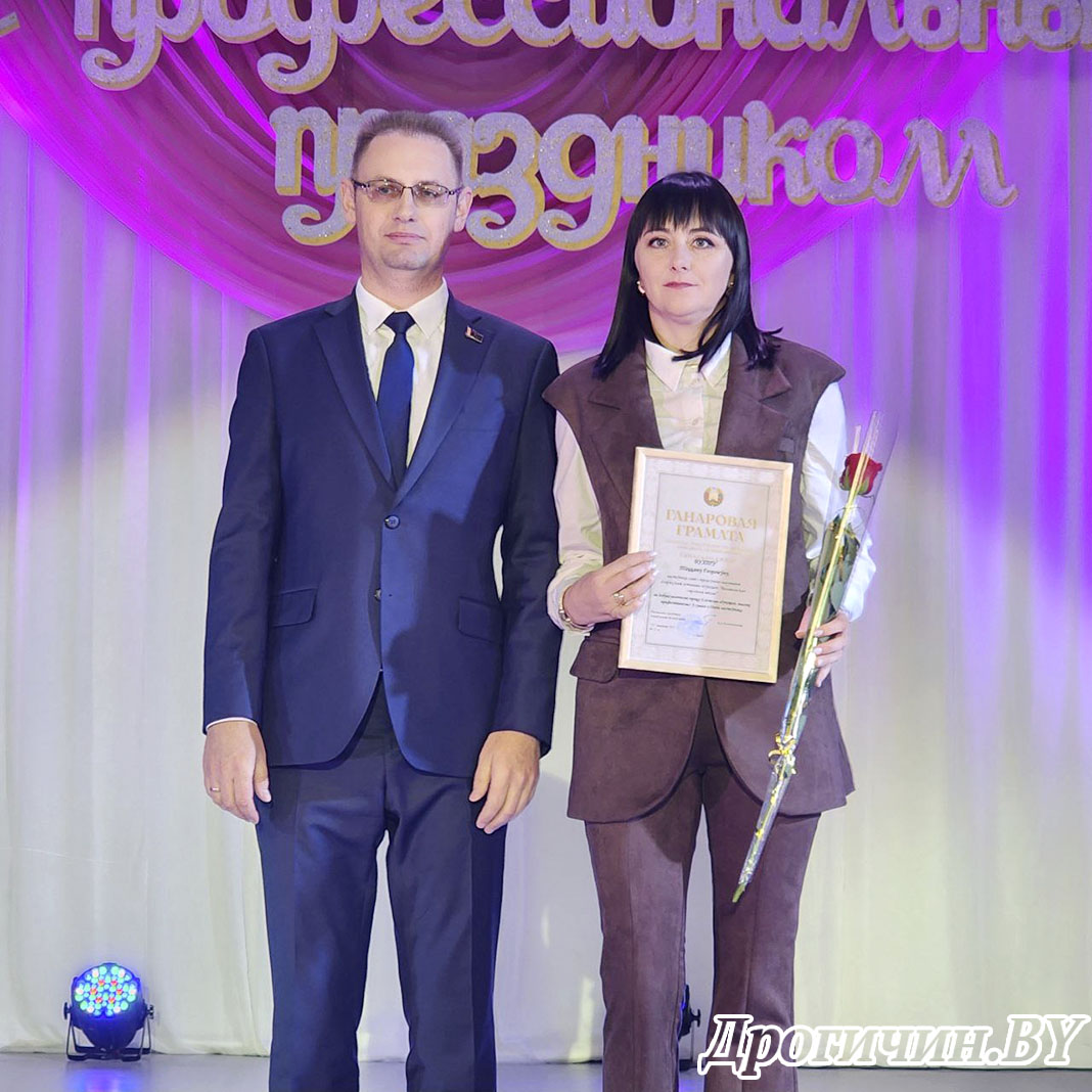 Торжественную церемонию чествования представителей сферы образования района продолжили председатель районной организации Белорусского профессионального союза работников образования и науки Людмила Коняхович и председатель районного комитета профсоюза работников агропромышленного комплекса Светлана Щур.