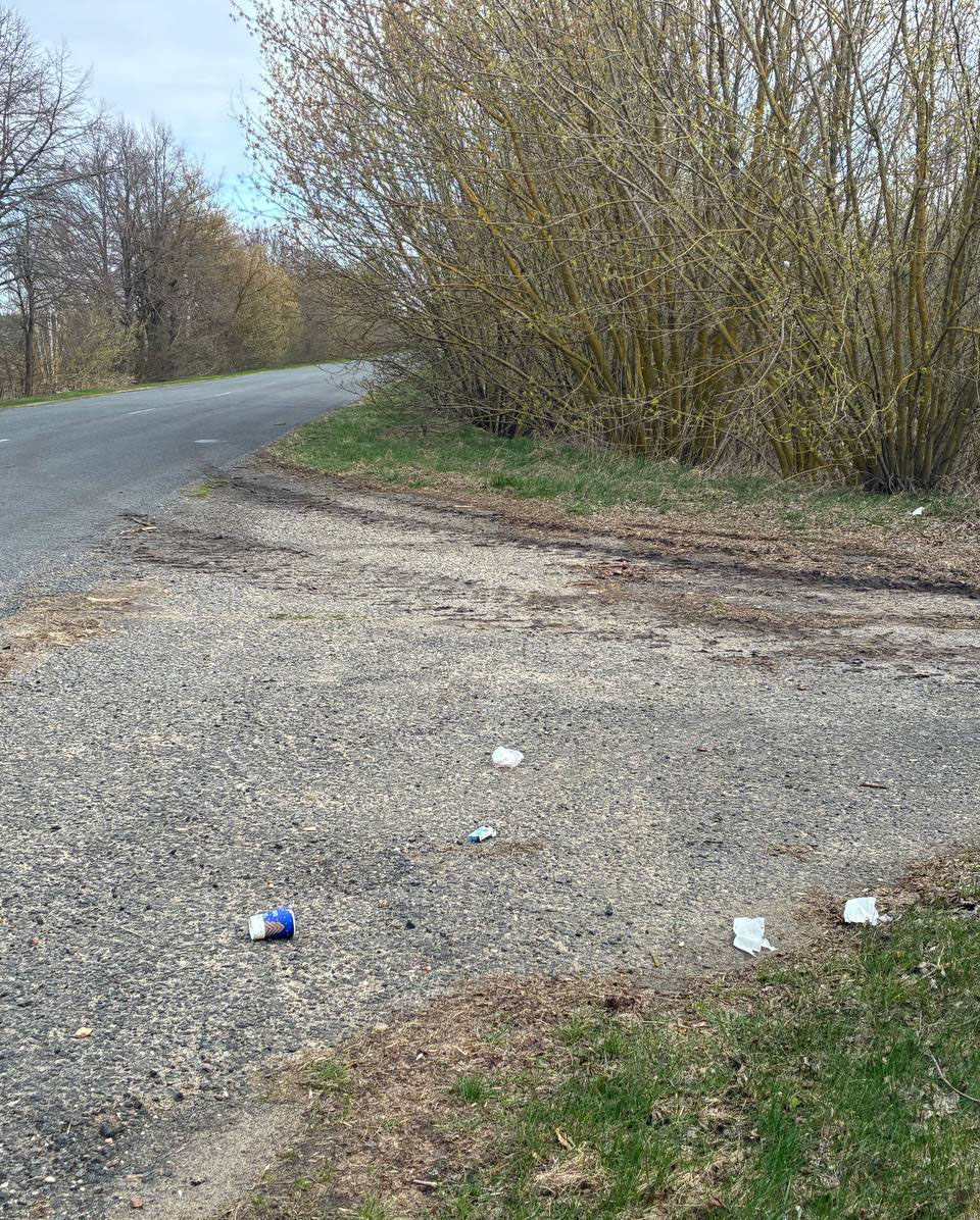 Подобная картина, к сожалению, часто наблюдается и у съезда к деревне Селище. Водители, останавливаясь для короткого отдыха, оставляют после себя пустые стаканчики и окурки прямо у дороги. Трудно представить, что кому-то было бы приятно видеть подобный беспорядок у собственного дома.