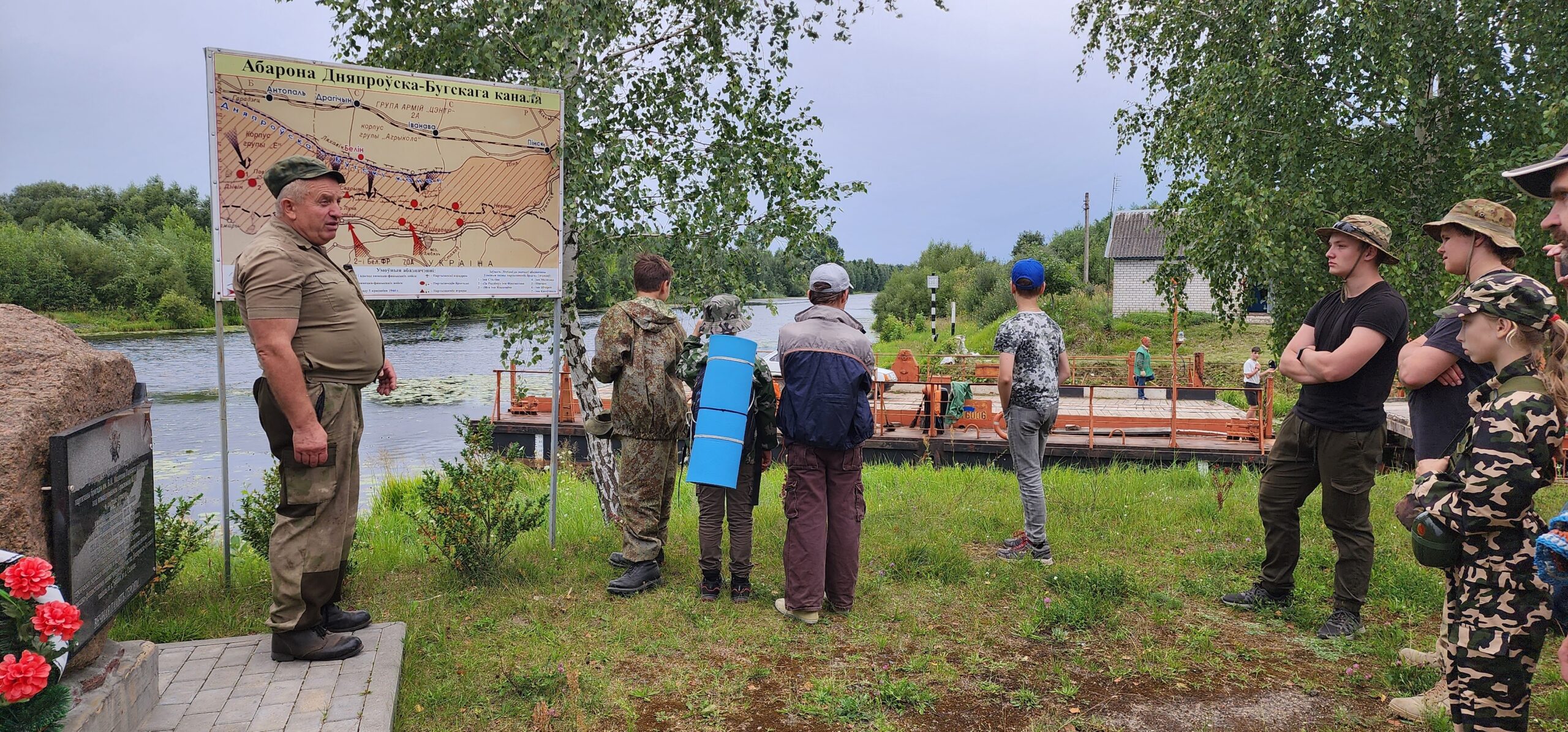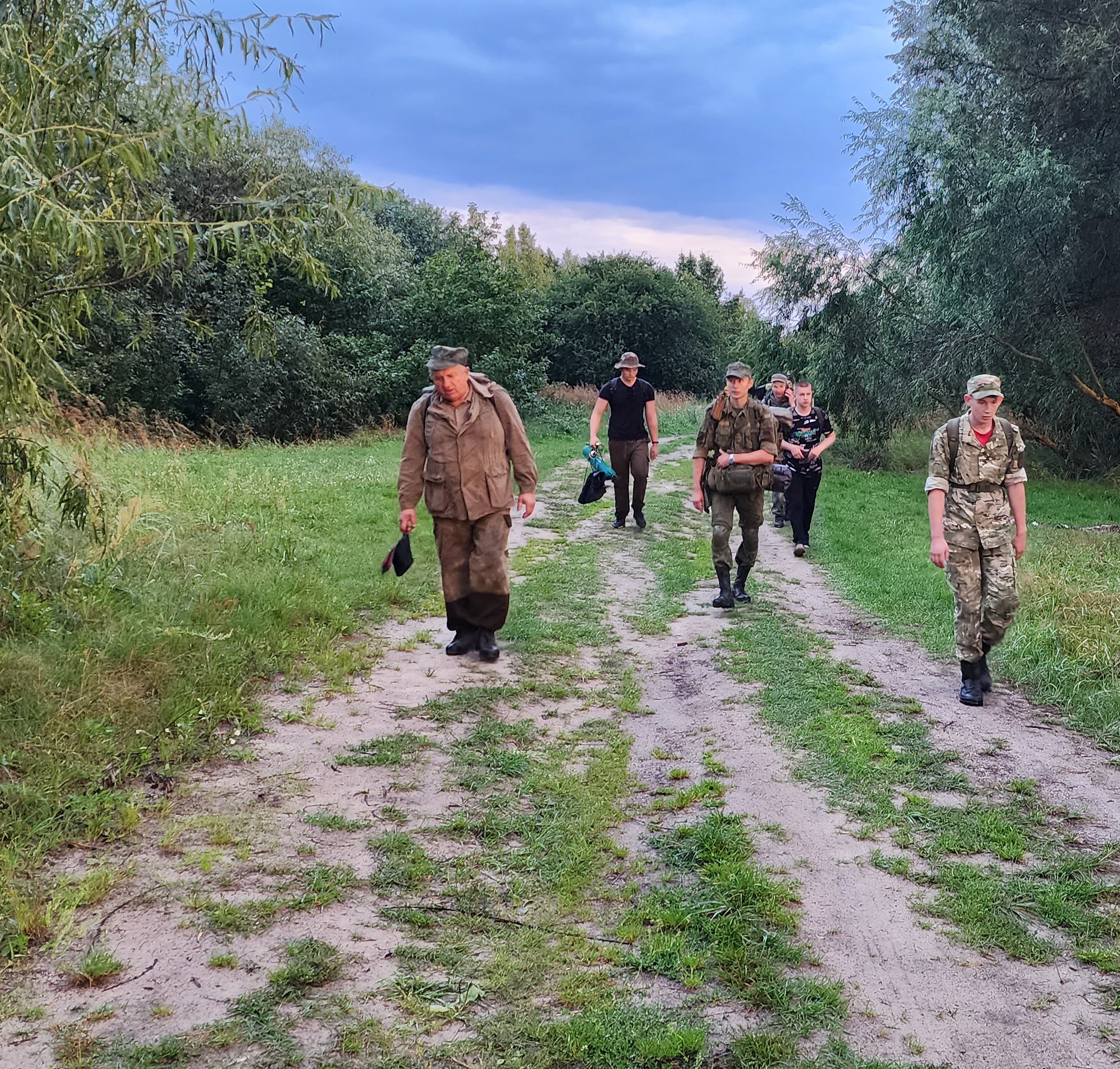 После незабываемого водного путешествия, начинающие и уже бывалые пересветовцы в сопровождении директора Военно-исторического музея Сергея Граника и руководителя клуба Тимофея Климчука, «форсировав» мост через Ляховичский канал недалеко от его впадения в Днепробуг, тропами лесных воинов направились к деревне Белин. По прибытию в деревню, у паромной переправы, участники похода посетили памятный знак в честь героической обороны Днепровско-Бугского канала. Сергей Граник рассказал пересветовцам как с 21 февраля по 31 марта 1944 года партизанская бригада им. Молотова под командованием Михаила Герасимова вела упорные кровопролитные бои с фашистскими захватчиками на участке Днепровско-Бугского канала от деревни Бошня (Ивановского района) до деревни Селище. От памятника героев-партизан, путь участников похода продолжился к Белинскому озеру, недалеко от которого они разбили палаточный лагерь для ночлега. После чего ребят ожидал ужин у костра.