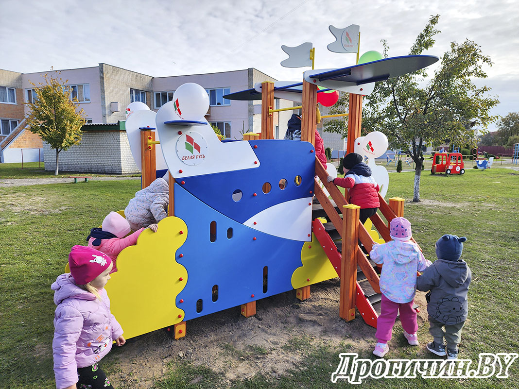Республиканское общественное объединение «Белая Русь» подарило детям яркую и красивую горку. Игровое оборудование установили в понедельник, 6 октября.