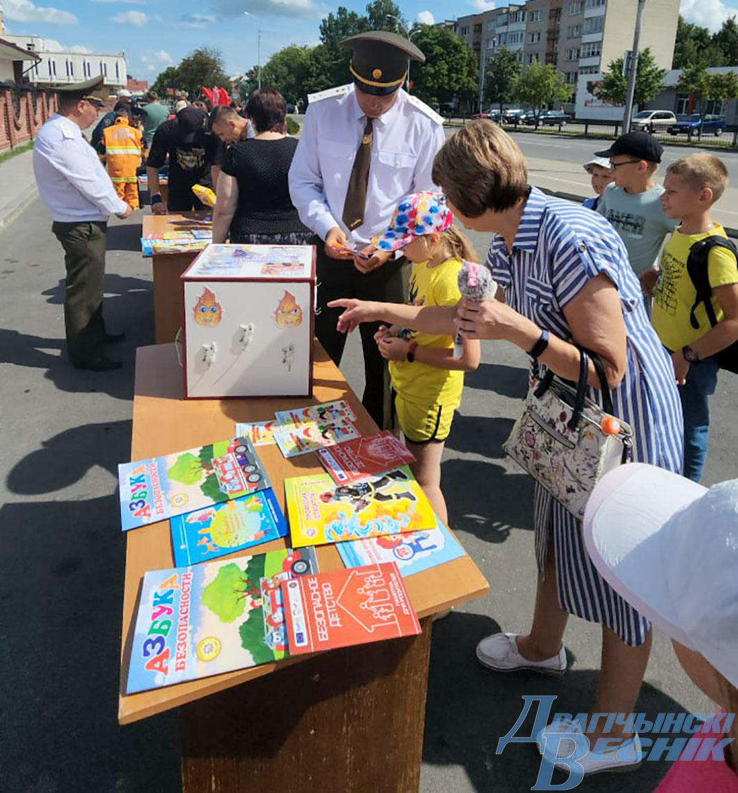 Рядом с показом пожарной аварийно-спасательной техники развернули свою работу тематические площадки РОЧС, где ребятишки с удовольствием играли в игры на тему пожарной безопасности: «Безопасное детство», «Волшебные пазлы». Огромный интерес вызвала площадка с боевой одеждой спасателя, площадка с планшетом, где было представлено приложение «МЧС Беларуси – помощь рядом» и «Куб безопасности».