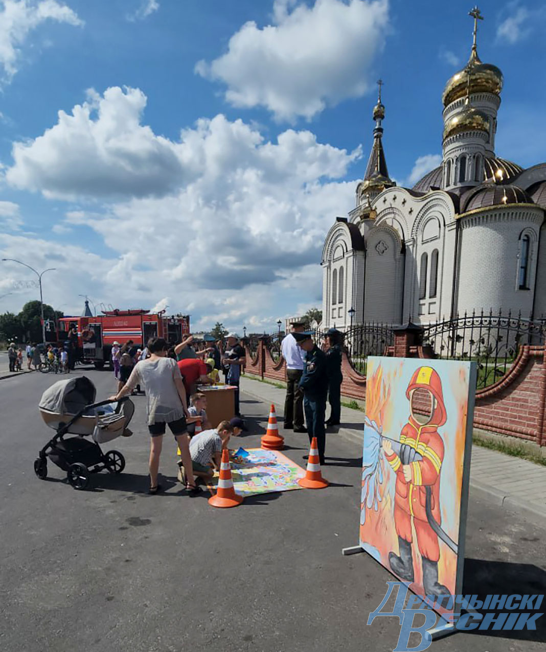 Перед тем как на площадке возле кинотеатра начали работать тематические площадки клирик храма в честь преподобной Евфросинии Полоцкой в городе Дрогичине иерей Димитрий Гречко совершил краткий молебен и прочитал молитвы на благословение пожарной техники, окропив ее и сотрудников РОЧС святой водой. Затем дрогичинские пожарные начали демонстрацию аварийно-спасательной техники, в числе которой была представлена и пожарная техника, выпущенная в 1980-90-е годы, и новые образцы, поступившие на вооружение к нашим спасателям недавно. Современная аварийно-спасательная техника создается на базе МАЗ. От старых образцов отличаются полным приводом и многофункциональностью, а по объему возимых огнетушащих веществ серьезно превосходит образцы старой техники, созданной на базе ЗИЛ.