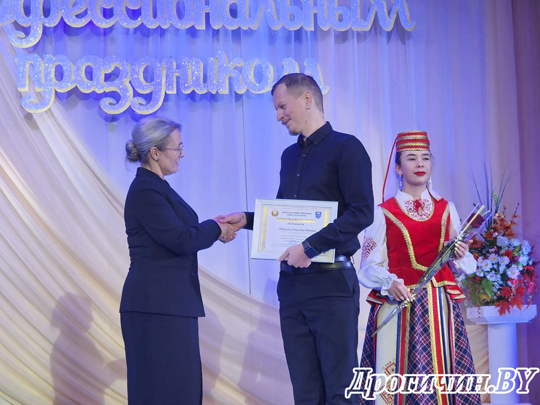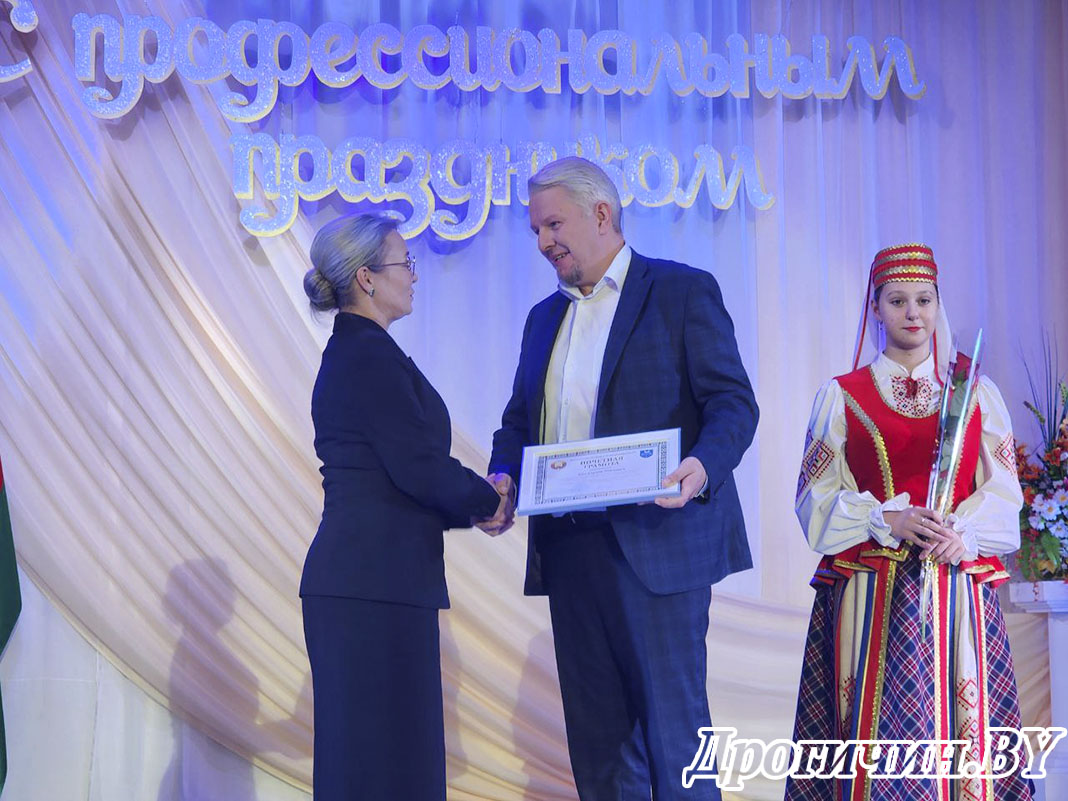 Наталья Ивановна вручила почетные грамоты и благодарственные письма от райисполкома и районного Совета депутатов за добросовестный труд и высокий профессионализм представителям творческих профессий района. Среди награжденных аккомпаниатор ГДК Сергей Бич, директор «Дрогичинской киновидеосети» Галина Домбровская, музейные, библиотечные и педагогические работники.