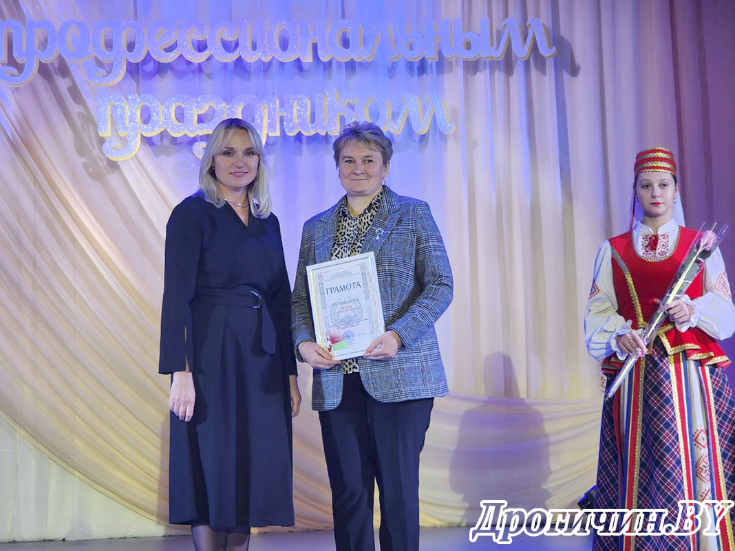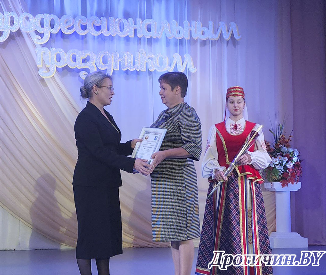 Инна Прокофьевна вручила грамоты достойным представителям учреждений культуры района. Особое внимание среди награжденных было уделено Татьяне Суботько – солистке городского Дома культуры, которая уже 40 лет остается верна сцене, а трудится мастером производственного обучения Дрогичинского государственного аграрного колледжа.