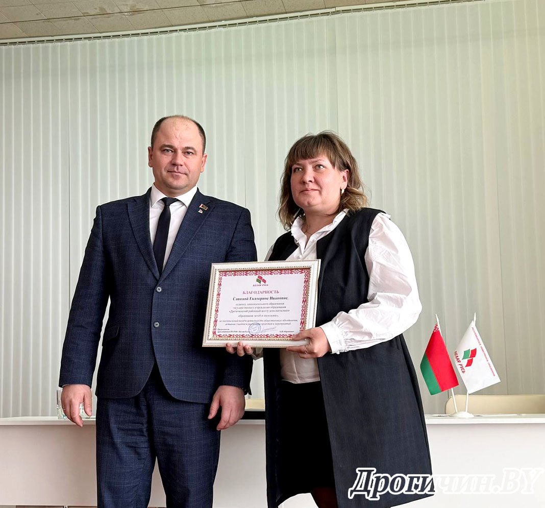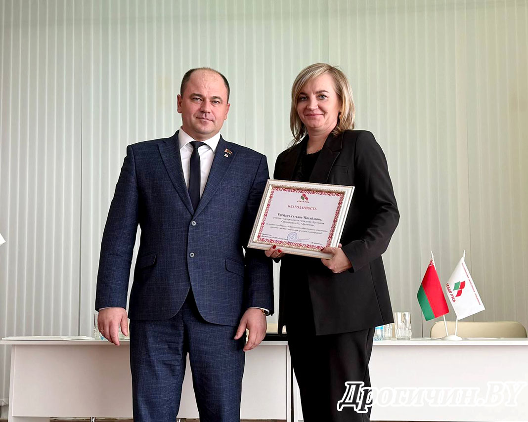 Благодарность Дрогичинской районной организации РОО «Белая Русь» была вручена Татьяне Крейдич, члену первичной организации средней школы № 2 г. Дрогичина и Екатерине Савиной, члену первичной организации районного центра дополнительного образования детей и молодежи.