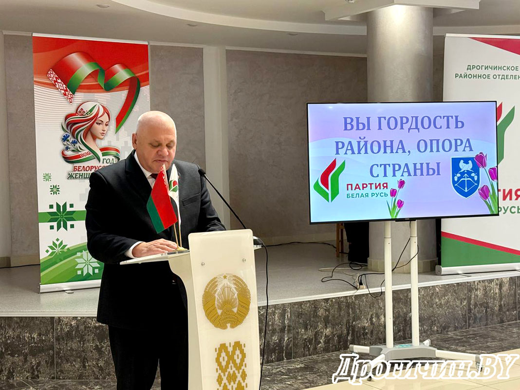 Слово для поздравления во время торжественного приема было предоставлено председателю районного отделения Белорусской политической партии «Белая Русь» Елене Богомаз. Елена Михайловна поздравила женщин с праздником и отметила огромную значимость каждой из присутствующих в развитии нашего района.