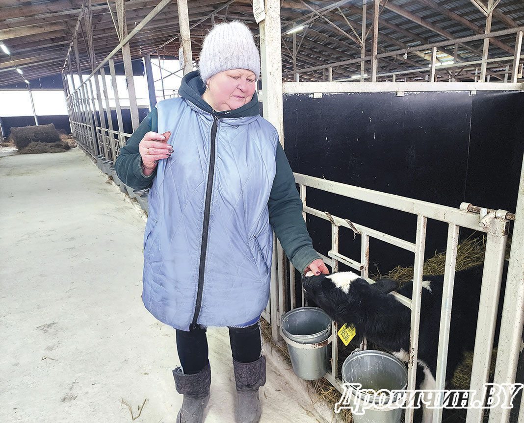 За этой работой мы застали Ларису Анатольевну Потапчук. Особой, можно сказать материнской, заботой окружила она новорожденных телят, и они, понимая это уже с первых дней своей жизни, отвечают внимательной женщине взаимностью, полизывая шершавым язычком руку Ларисы Анатольевны.