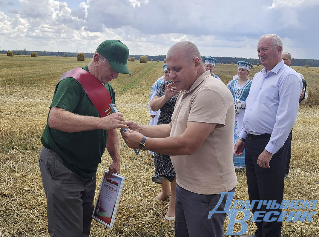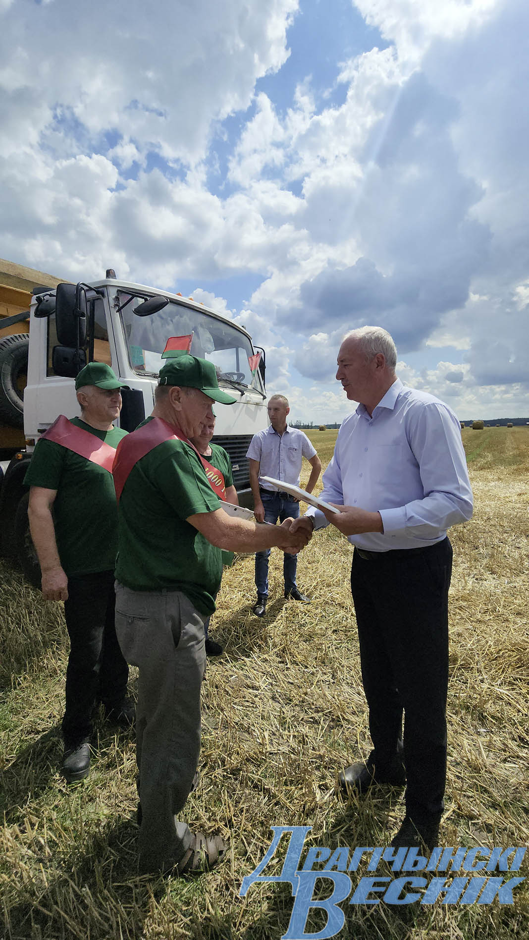 Чествовали сегодня и водителей-передовиков из ОАО «Алексеевичи-Агро». Среди тех, кто перевез свою первую тысячу тонн урожая текущей страды, — Александр Андронович, Андрей Дорн и Виктор Соловейко. С достижениями тружеников страды поздравили заместитель председателя райисполкома – начальник управления по сельскому хозяйству и продовольствию Сергей Глинский, председатель хозяйства Сергей Пачко и председатель Дрогичинского райкома профсоюза работников АПК Алла Комиссарчук. Водители-тысячники были отмечены благодарностями, подарочными сертификатами и ценными подарками от райкома профсоюза.